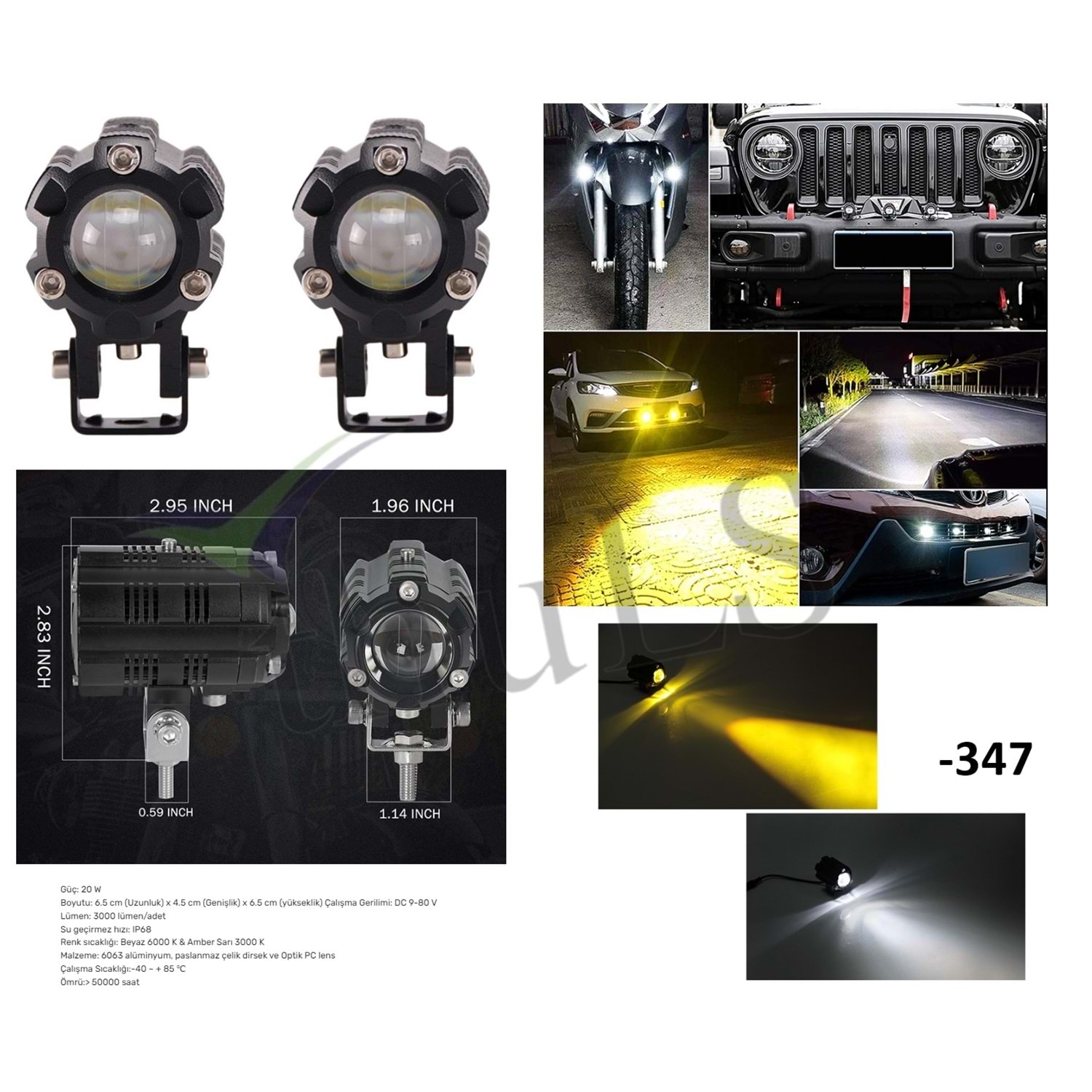OFFROAD SIS -347 BEYAZ-SARI (6.5 CMX4.5 CM 6.5 CM) 10W 12-80V SET