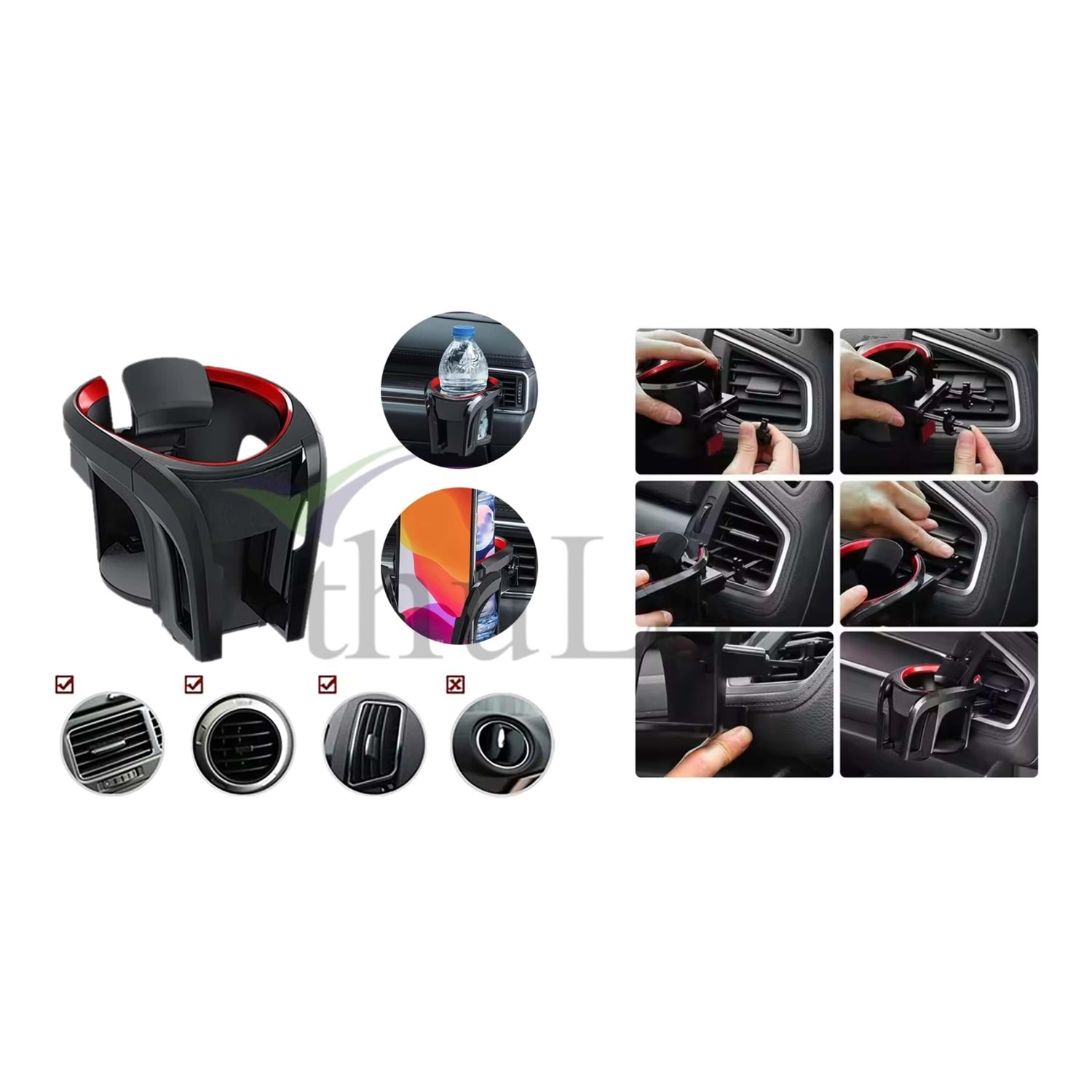 TELEFONLUK+BARDAKLIK TUTUCU -57-2 KIRMIZI-SİYAH